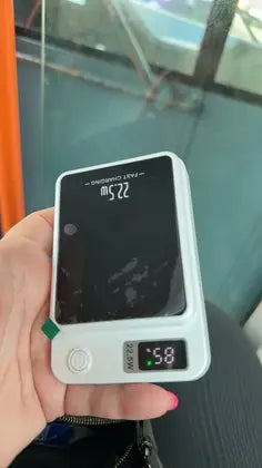 Este destul de voluminos... dar are o capacitate de 10k mAh, dacă informația este corectă... În orice caz, l-am testat rapid și am constatat că are funcții de încărcare fără fir și cu fir, care pot fi selectate folosind butonul de alimentare.
